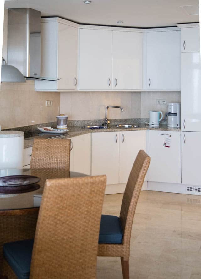 Apartments are spacious, all with large sea facing balconies, are immaculately clean and neutrally decorated to cater for all tastes. I shared a two bedroom apartment, each with large en suite and huge living, dining area with a massive balcony.
