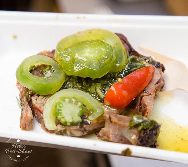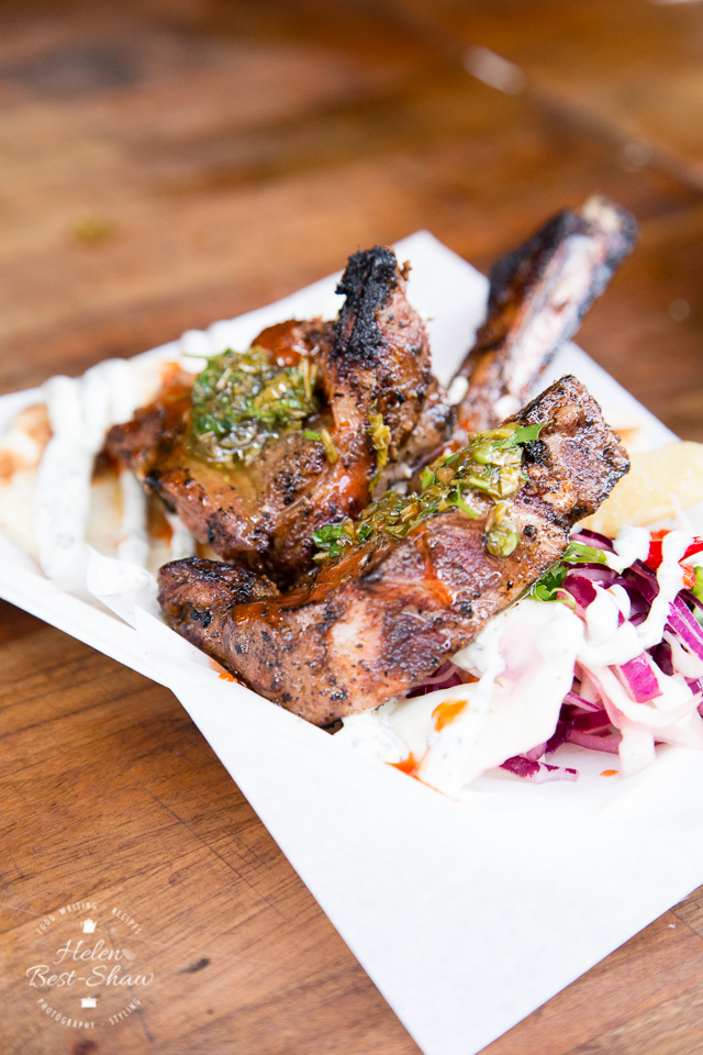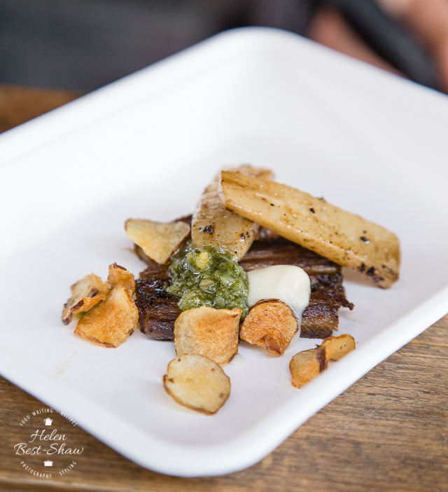 Dishes on offer included a Moroccan lamb burger, spiced chops, 36 hour cooked lamb breast – served with artichoke puree and salsify, and a hay baked hogget with herbs and tomato salsa. All delicious, big on flavour, prepared ahead and then rapidly finished and served to a crowd.