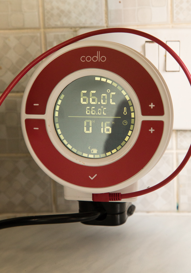 A more elegant solution comes in the form of the Codlo, which converts your analogue slow or rice cooker into a sous vide. You simply dunk the temperature probe into a slow cooker full of water, plug the cooker into the Codlo, then the Codlo into an electric socket. Set the temperature and cooking time and away you go. The Codlo turns the power on and off to keep the water at a set temperature. The device costs £119, so considerably cheaper than a traditional sous vide, and importantly for us is considerably smaller, fitting into the slow cooker when not in use, effectively not taking up any space, as well as being British made. The Codlo is a winner on all accounts.