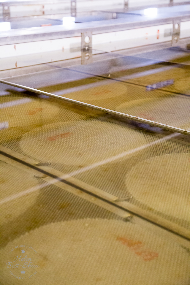 Once the cheese has been transferred to the metal moulds it is stacked onto shelves and immersed in a cool brine to be salted for between 20 – 25 days, before it is removed and sent to the ripening shelves for at least 9 months to mature.