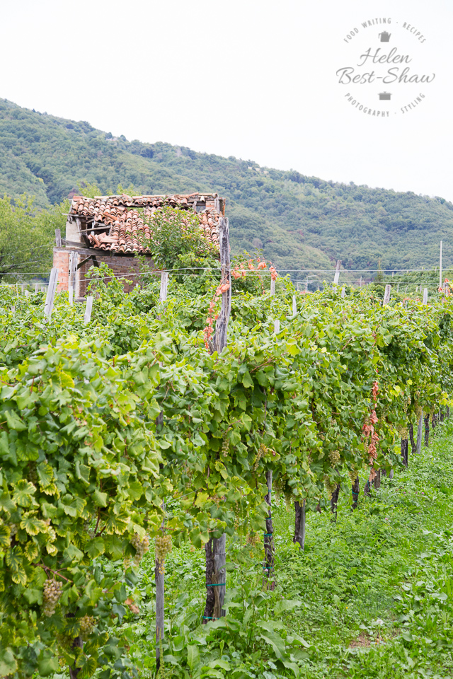The terroir is very different from other wine areas which I have visited, the hills with their back drop of mist covered mountains were stunning even on a dull overcast day; they must be magnificent in the sun.
