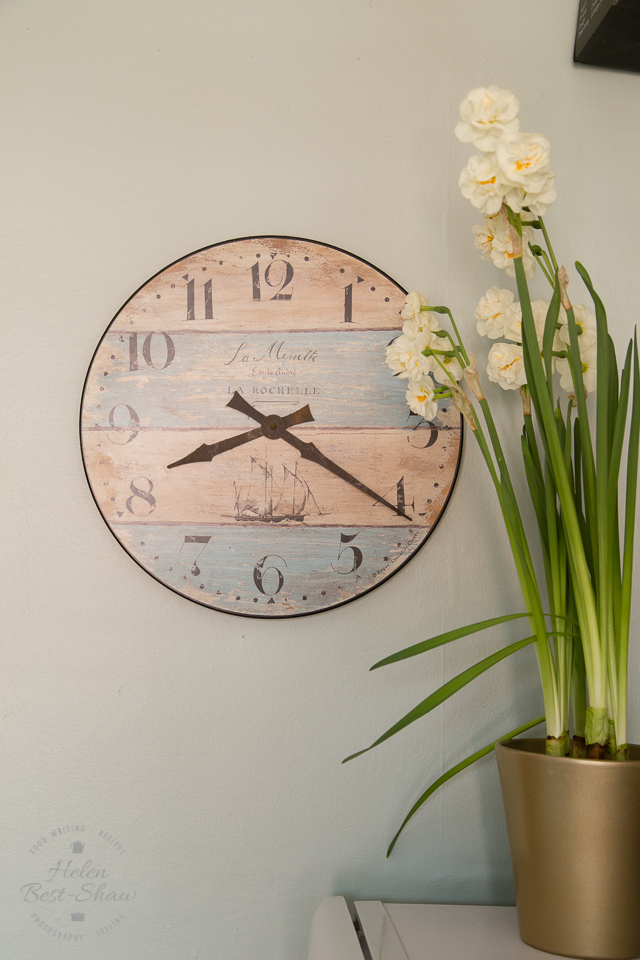 Back from my walk and to my desk. I like a clear and uncluttered desk – usually I move most of my paper work off it – as this helps me concentrate. I keep a few favourite ornaments and my beloved pretty notebooks and coloured pens. I work with my laptop docked to a monitor with a wireless keyboard and mouse, for years I sat hunched over a laptop or on the sofa. It is uncomfortable, and really does not do your posture or back any favours – if you do not have the space for a monitor stand your laptop on a stack of books and work with a separate keyboard and mouse, it makes a world of difference.